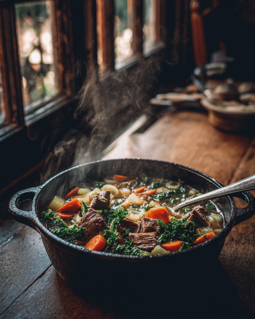 Zalig wintercomfort in een kom: malse runderstoof met knolselderij, wortel, preigroen en boerenkool. Langzaam gegaard voor diepe smaak, helemaal SIBO-vriendelijk en zonder ingewikkelde ingrediënten.